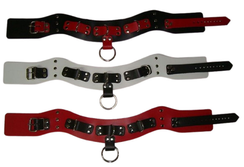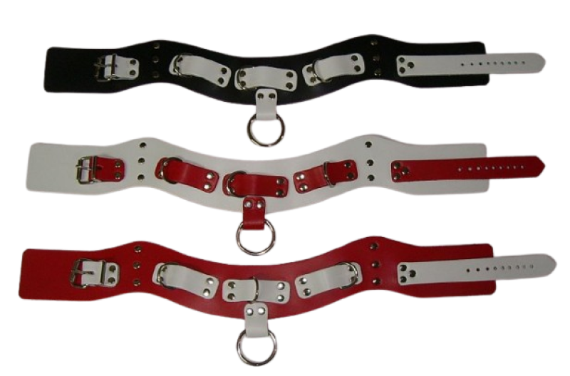 Super Leder-Halsbänder mit Nieten 5,0 cm breit verschweißten Ringen, O-Ring und Rollschnallen-Verschluß und Farbkombinationen