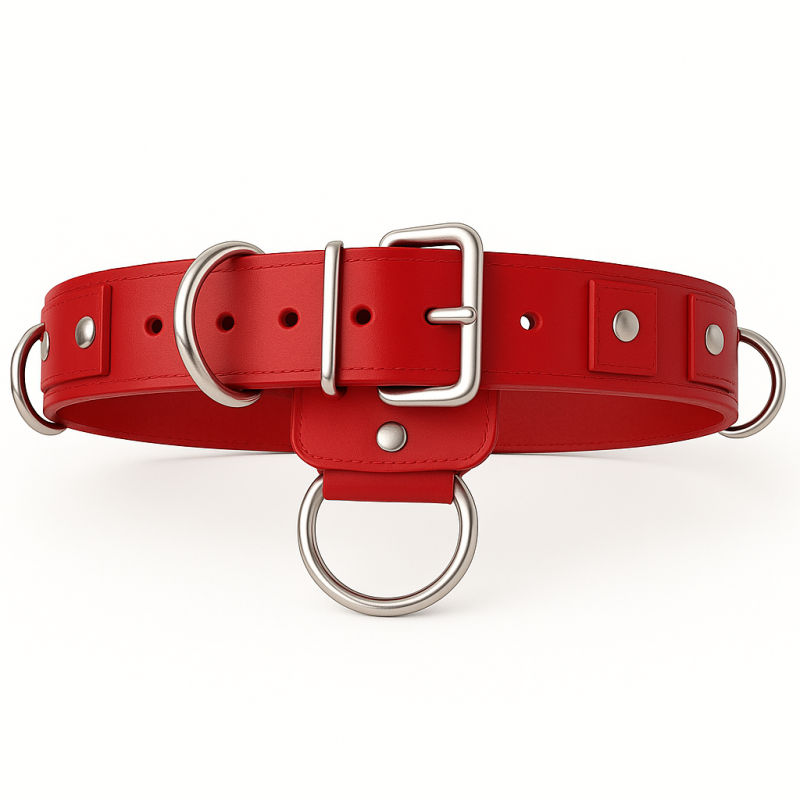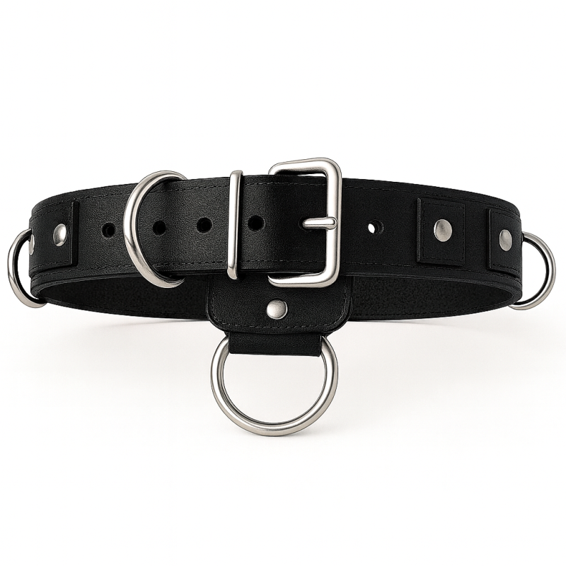 BDSM Taillengurt – Lederriemen mit 6 D-Ringen, Klemmschutz (4,0 cm) & zusätzlichem O-Ring – handgefertigte Ausführung von LWPH