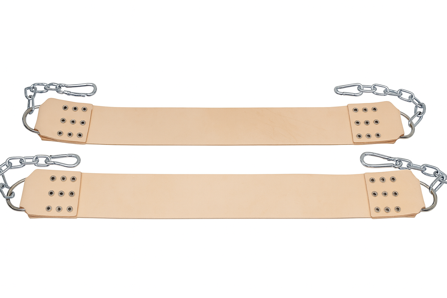 Die Schaukel wird aus vier kräftigen Ledertrageriemen gefertigt, die durch doppelte Sitz- und Rückengurte zusätzliche Stabilität bieten. Dadurch verteilt sich das Gewicht gleichmäßig auf die starken Kernlederriemen für ein sicheres und langlebiges Erlebnis.