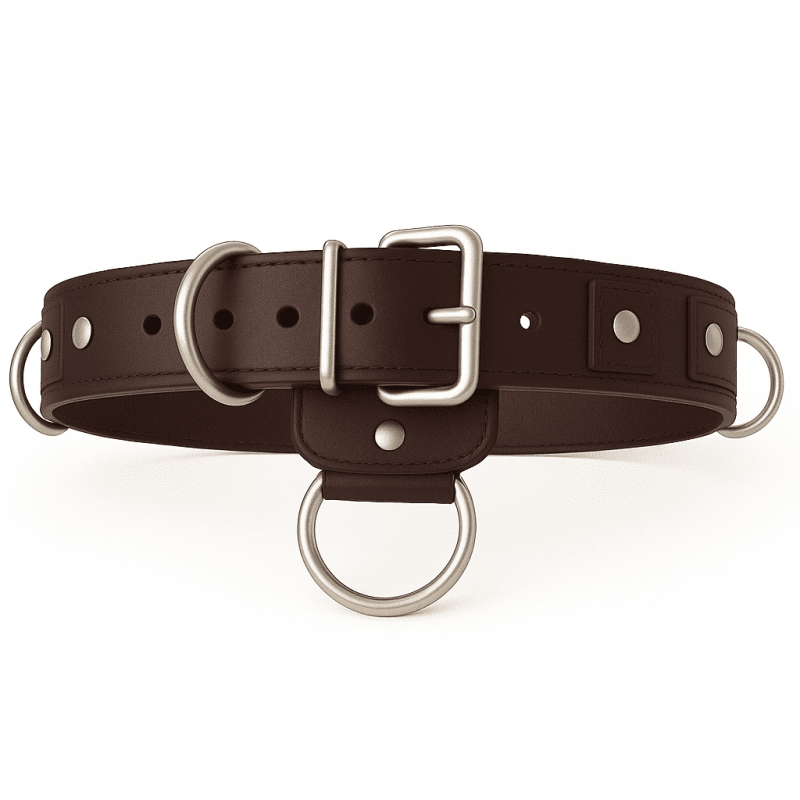 BDSM Taillengurt – Lederriemen mit 6 D-Ringen, Klemmschutz (5,0 cm) & zusätzlichem O-Ring – handgefertigte Ausführung von LWPH