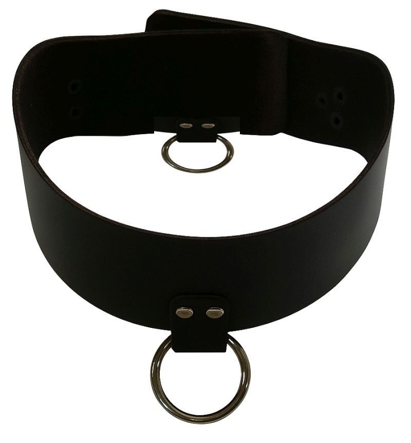 Breites anatomisches Echtleder-Halsband mit zwei O-Ringen – vorne und hinten. Dadurch kann die Lederringleiste sowohl vor der Brust als auch am Rückenfixiert werden.