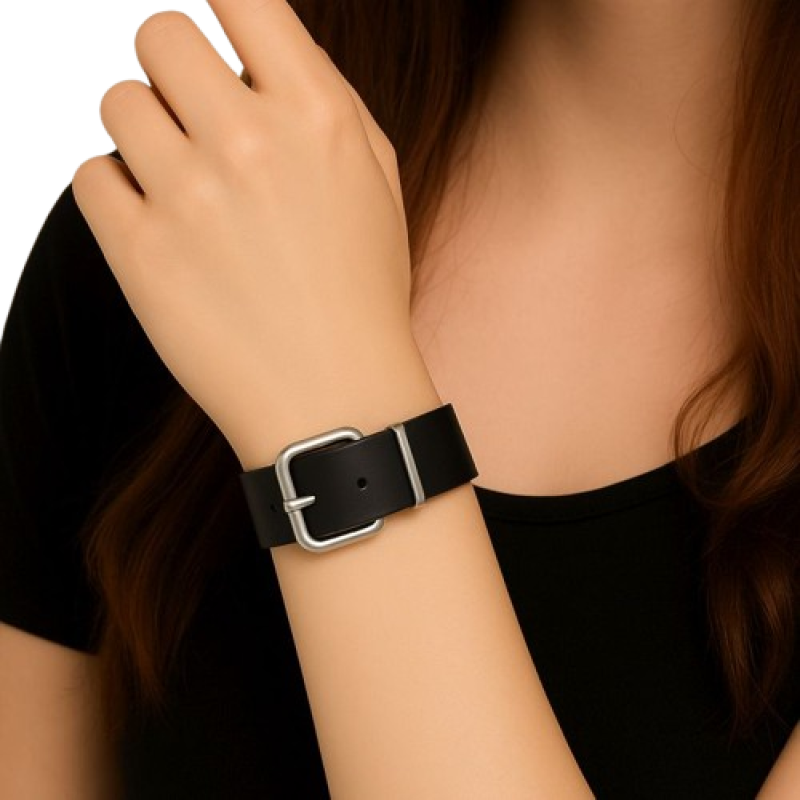 Das Armband ist mit einer silberfarbenen Metallschnalle (Rollschnalle) und passender Schlaufe ausgestattet und lässt sich schnell, sicher und bequem öffnen und schließen.